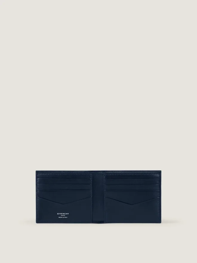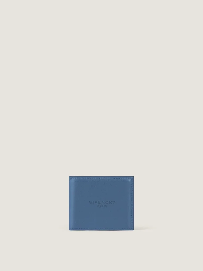 Bicolor Bifold Wallet in Padded Calfskin Leather. Antigona Stamped Line. Givenchy Paris Signature Debossed on the Front. Silvery
