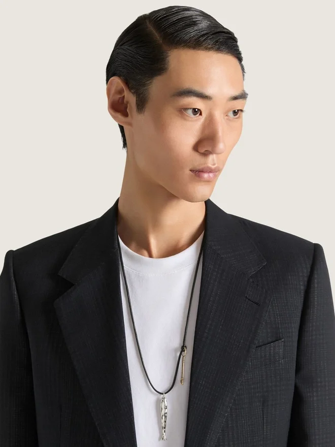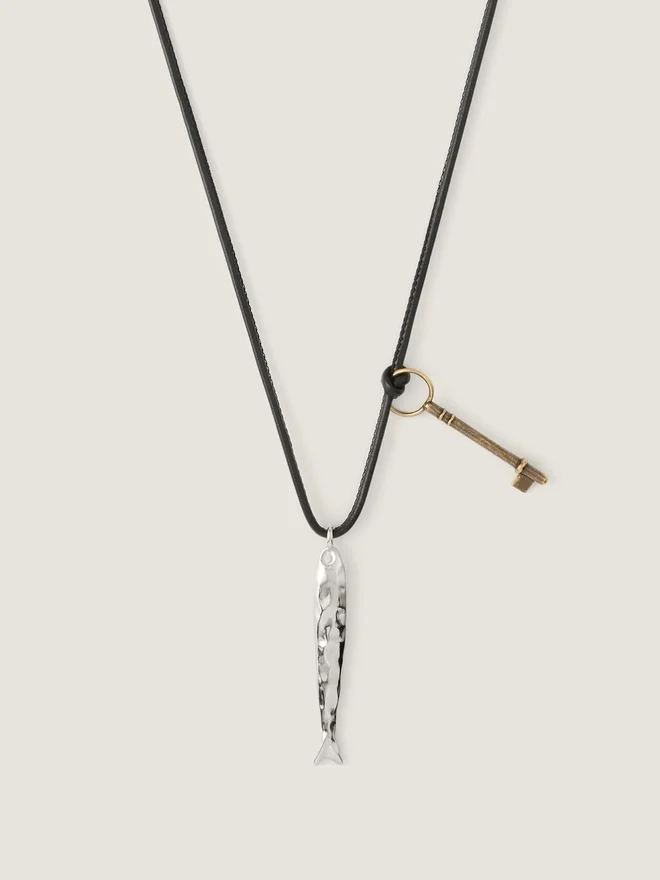 • Necklace in Leather Cord with Metal Charms.