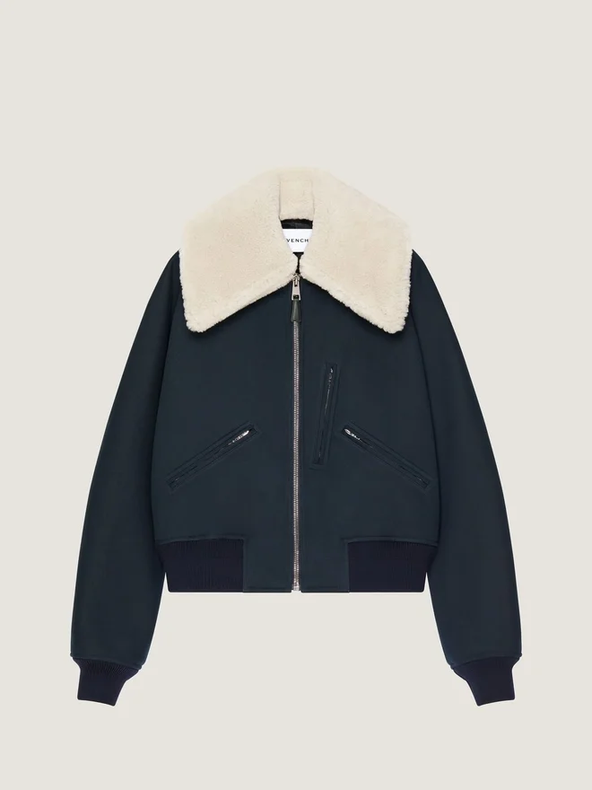 Bomber in Cotton. Removable Shearling Collar. Givenchy Paris Leather Patch on the Upper Back. Zipped Closure with Givenchy Metal