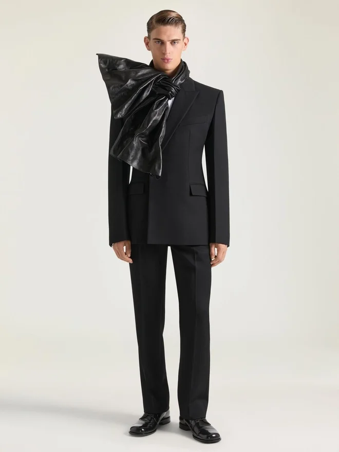 • Asymmetric Peaked Lapel.