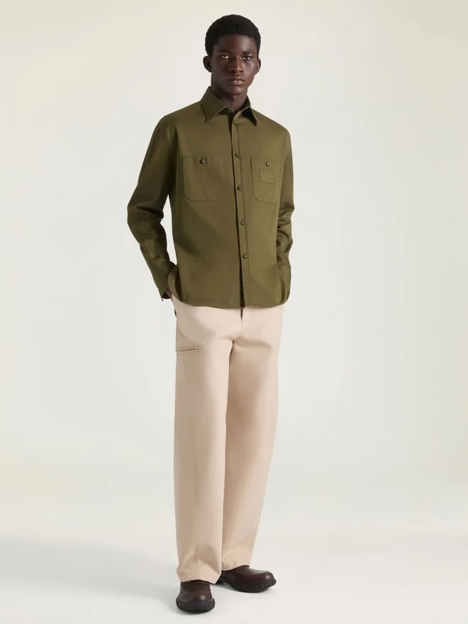 • Long-Sleeved Overshirt in Cotton Twill.