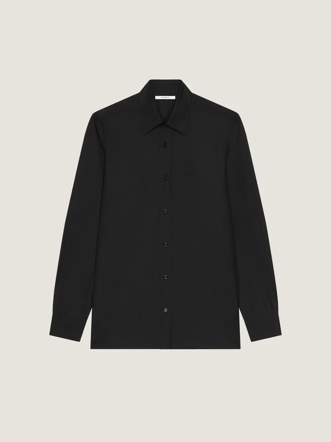 Long-Sleeved Shirt in Cotton Poplin. Classic Collar. Givenchy Tonal Embroidery on the Chest. Button Closure. Buttoned Cuffs. Slim