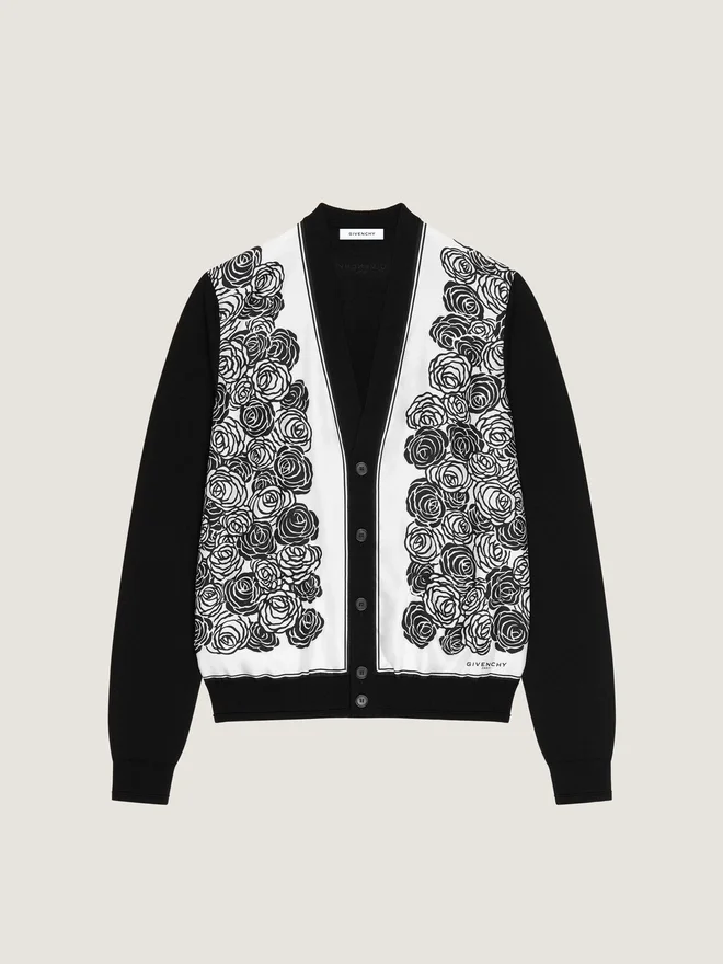 Cardigan in Cotton Knit with Flowers Print