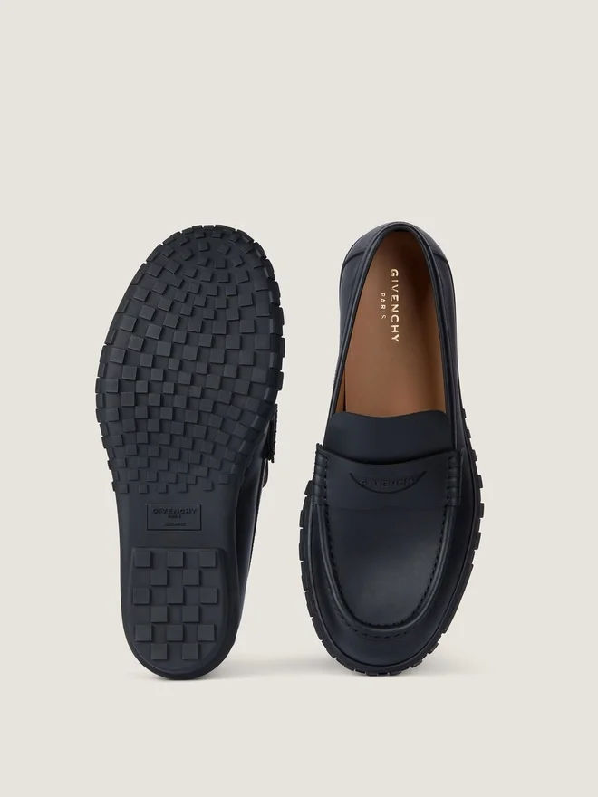 Loafers in Calfskin Leather. Givenchy Echo Line. Givenchy Signature Embossed on Top. Givenchy Signature Debossed on the Side of