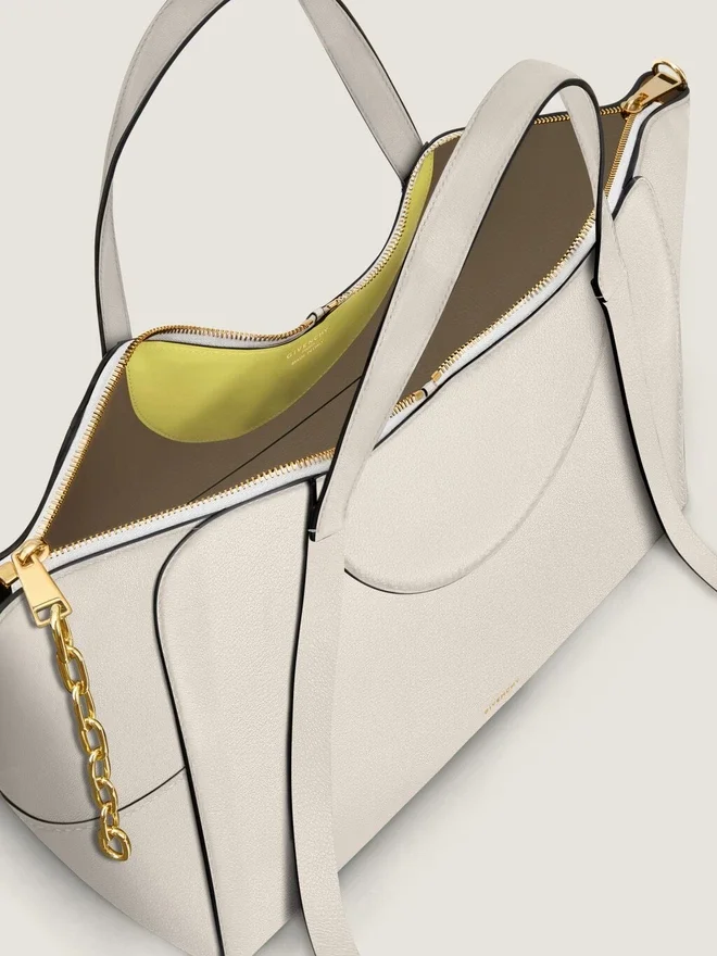 • Zipped Closure with Givenchy Engraved Zipper and Functionnal Metal Chain.