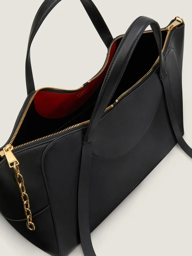 • Zipped Closure with Givenchy Engraved Zipper and Functionnal Metal Chain.