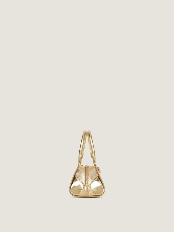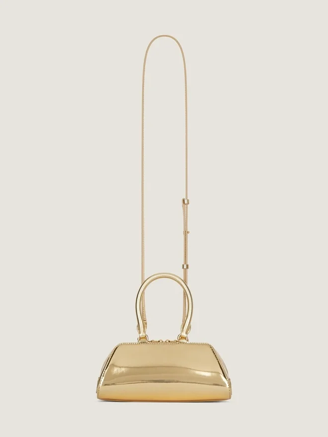 - Mini Handbag or Crossbody Bag in Laminated Calfskin Leather with Mirror Effect and Shiny Grained Leather.