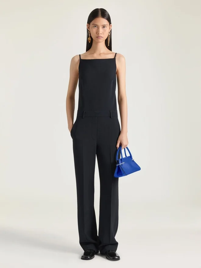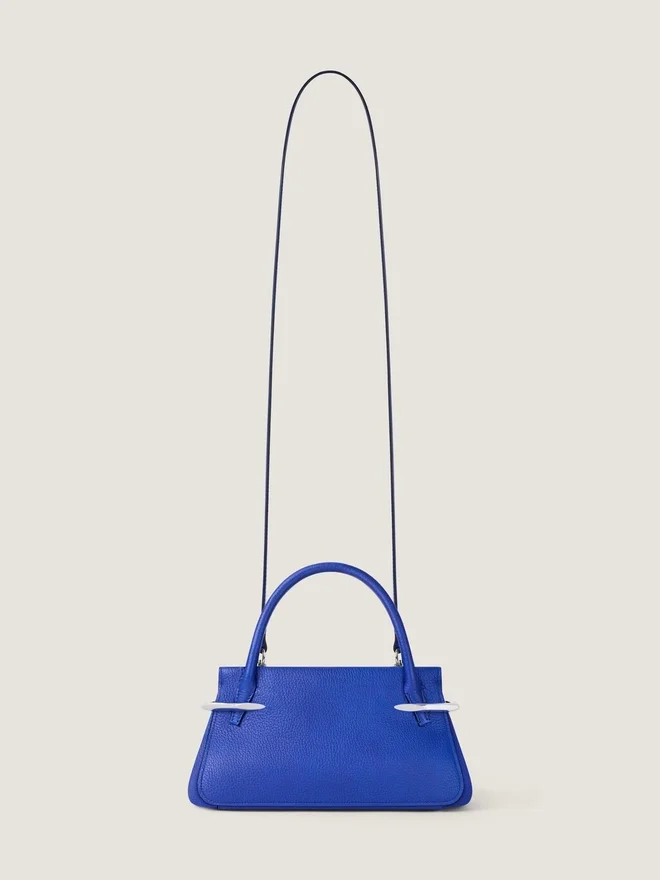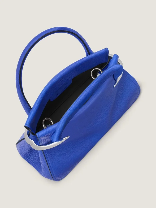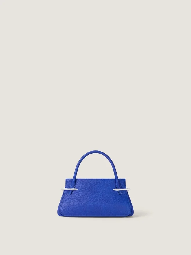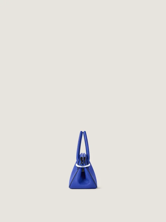 Mini Handbag in Grained Calfskin Leather. Pinch Line. Magnetic Closure. Leather Handles for Hand Carrying and Non Adjustable