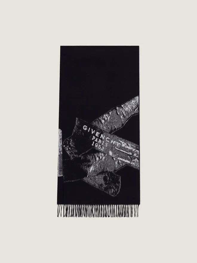 Scarf in Cashmere. Givenchy Tape Jacquard. Fringed Edges.