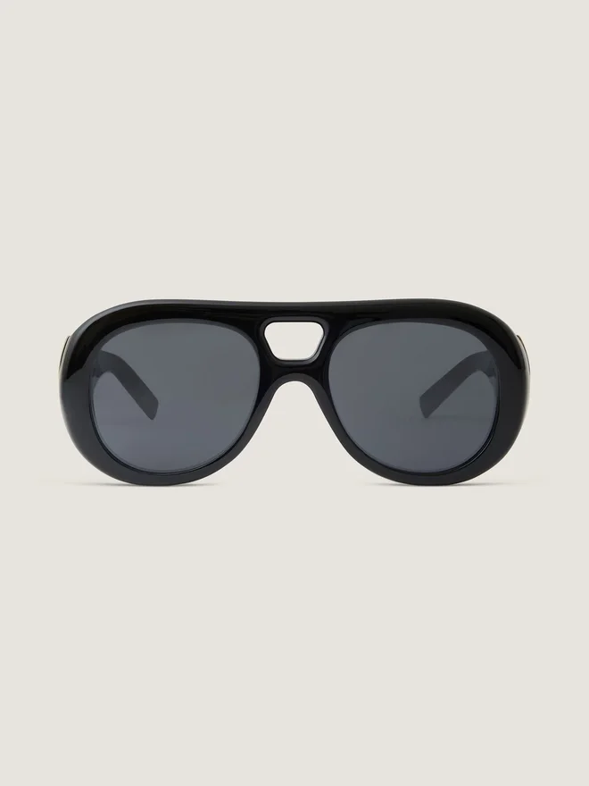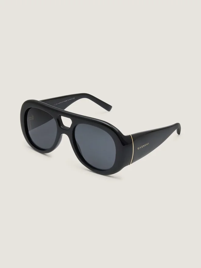 Sunglasses in Acetate. Givenchy Bold Line. Pilot Shape. Smoke Lenses. Double Bridge. Golden Givenchy Signature Engraved on the
