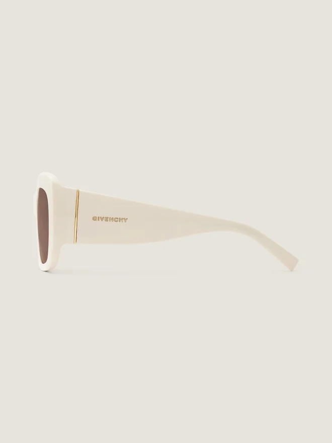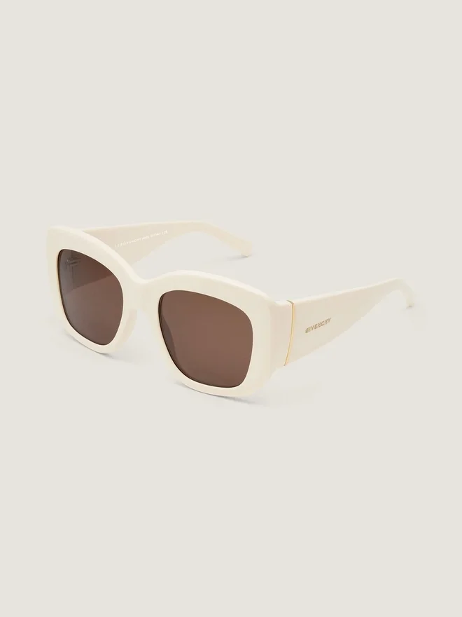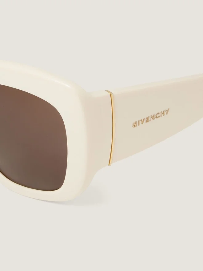 Sunglasses in Acetate. Givenchy Bold Line. Large Square Shape. Brown Lenses. Golden Givenchy Signature Engraved on the Temples.