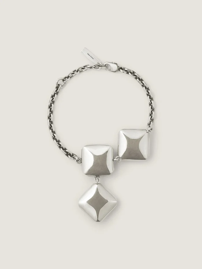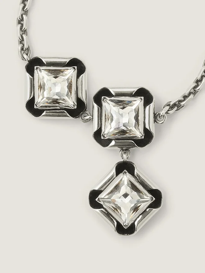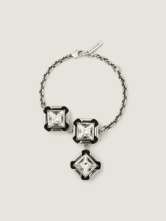 - Chain Bracelet in Silvery-Finish Oxidized Metal with Square and Diamond-Shaped Crystals, for a Deconstructed Look.