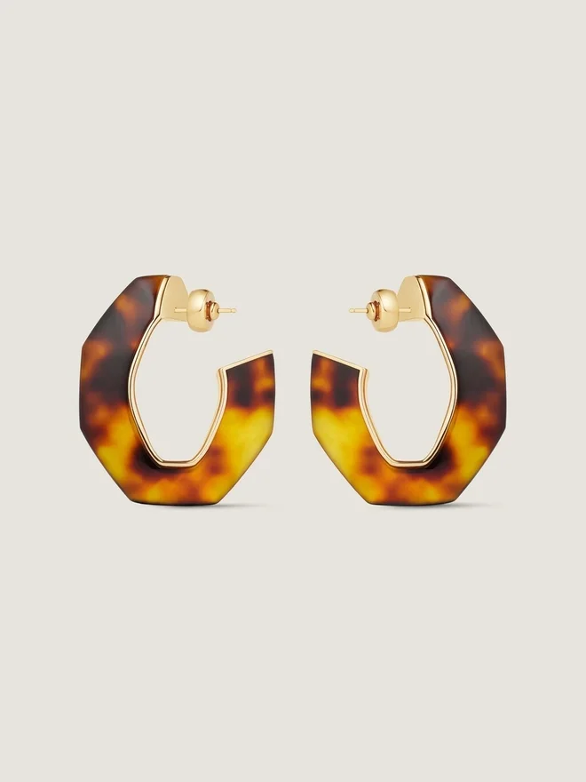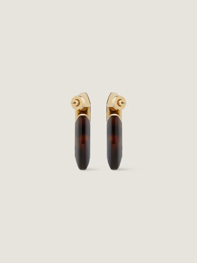 • Earrings in Golden-Finish Metal and Tortoise Shell Resin.