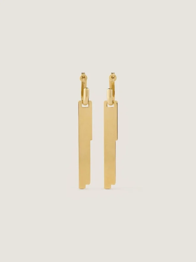 • Pendant Earrings in Golden-Finish Textured Metal.
