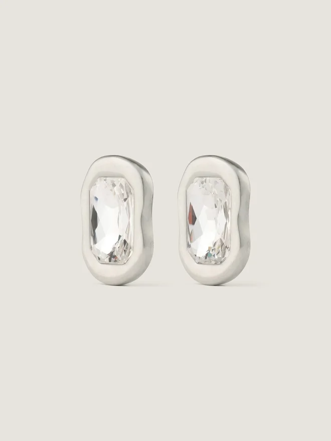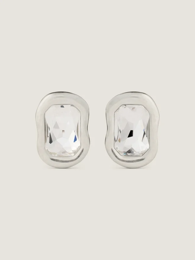 - Earrings in Silvery-Finish Metal with White Crystals.