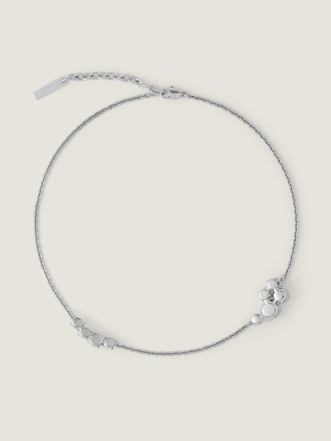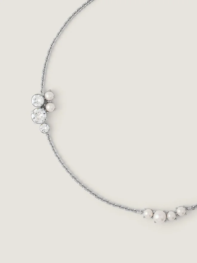• Short Necklace in Silvery-Finish Metal with Crystals and Pearls.