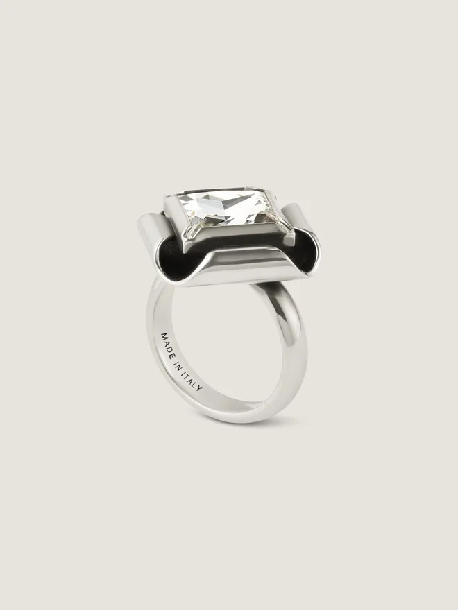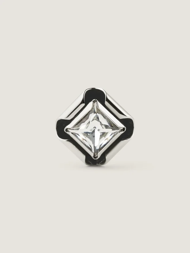 - Diamond-Shaped Ring in Silvery-Finish Oxidized Metal with Crystal.