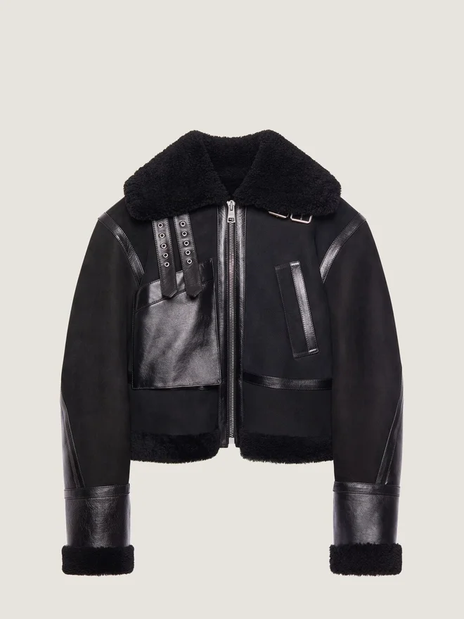 • Aviator Jacket in Shearling with Leather Details.