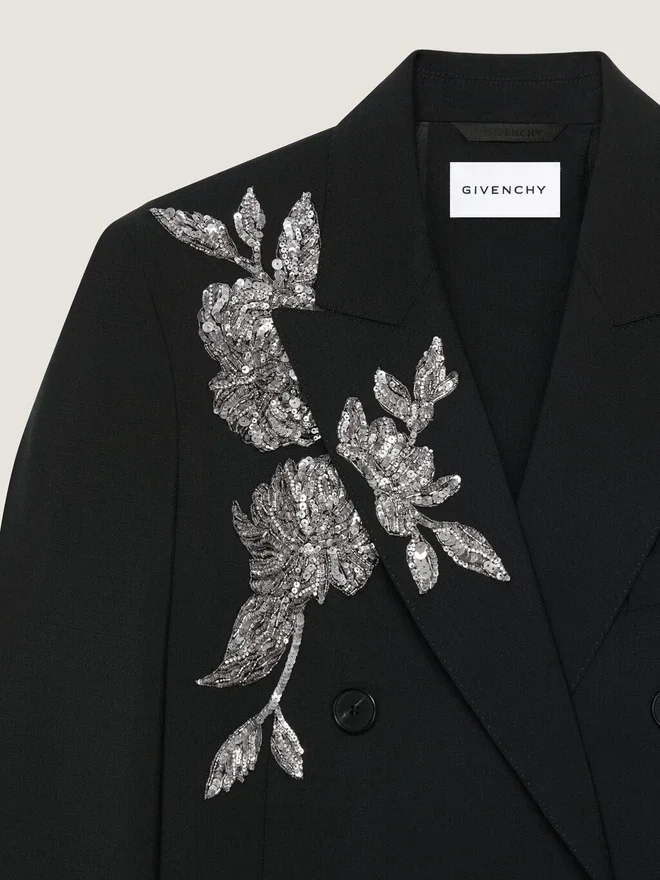 Double-Breasted Slashed Jacket in Wool with Sequins