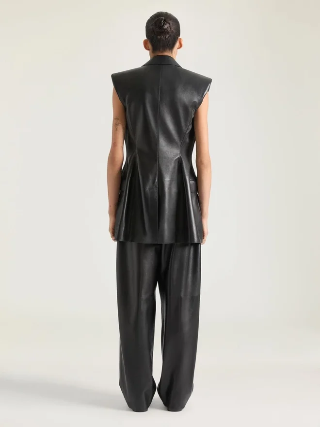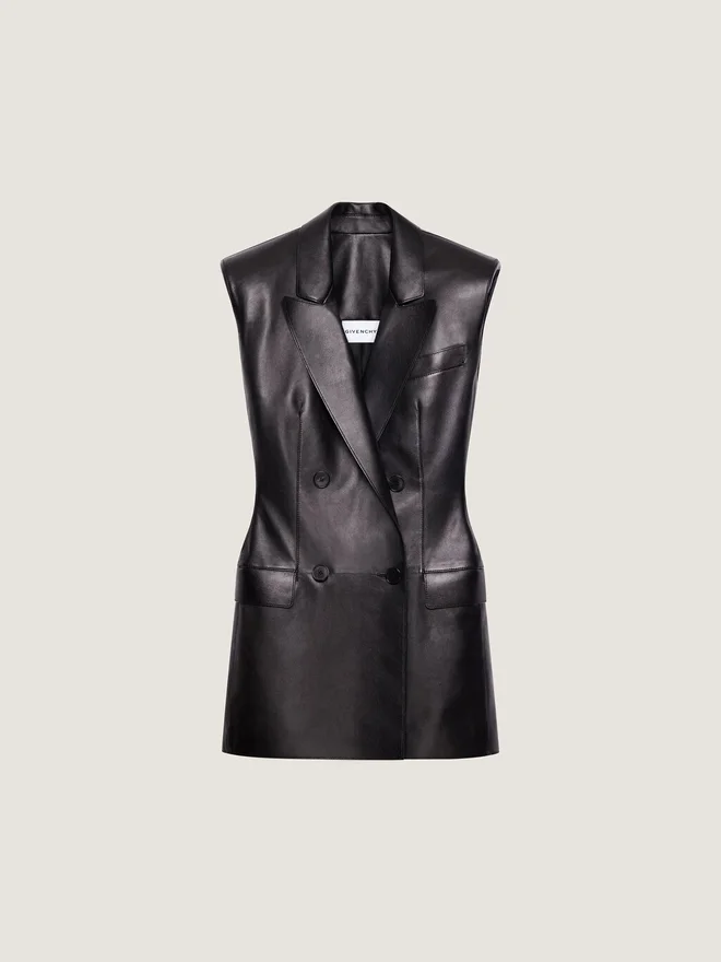 - Sleeveless Jacket in Plonge Lambskin.