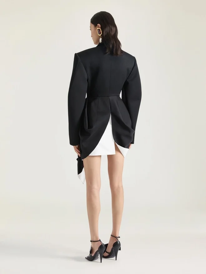 - Structured Bicolor Jacket in Grain De Poudre Wool.