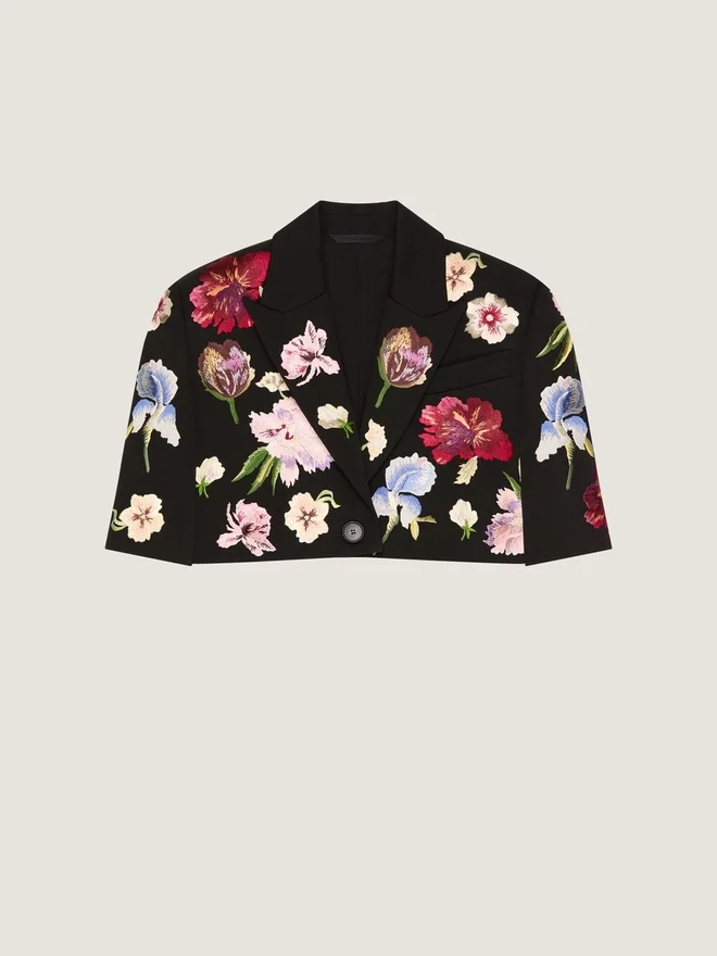 Single-Breasted Cropped Jacket in Wool with Embroideries