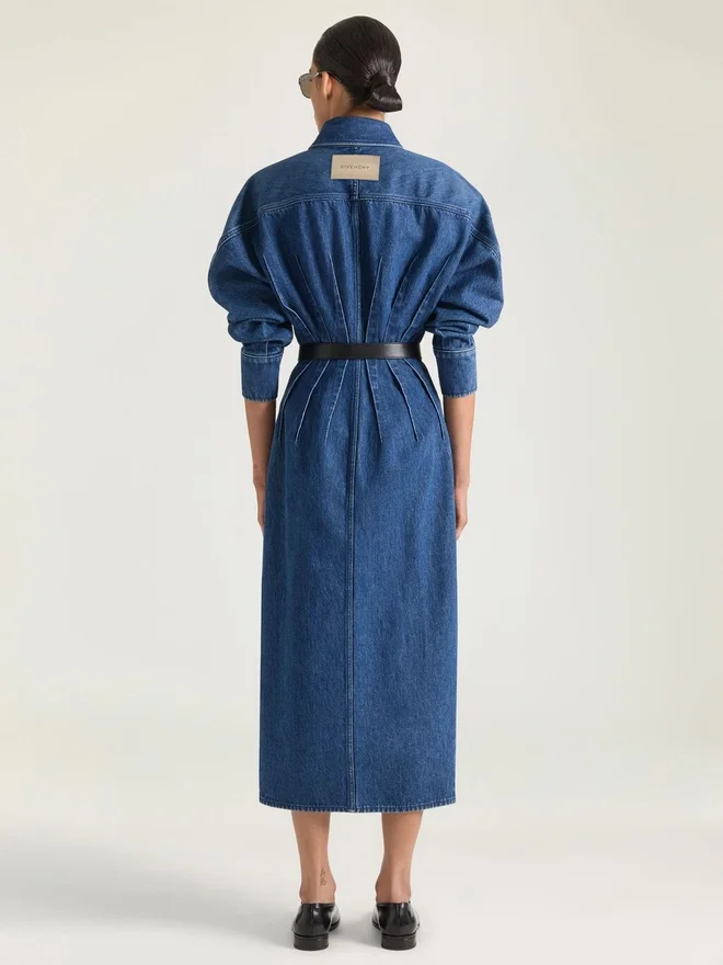 - Long Dress with Long Sleeves in Medium Blue Denim.