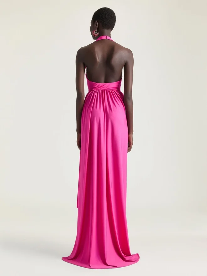Halterneck Draped Dress in Jersey