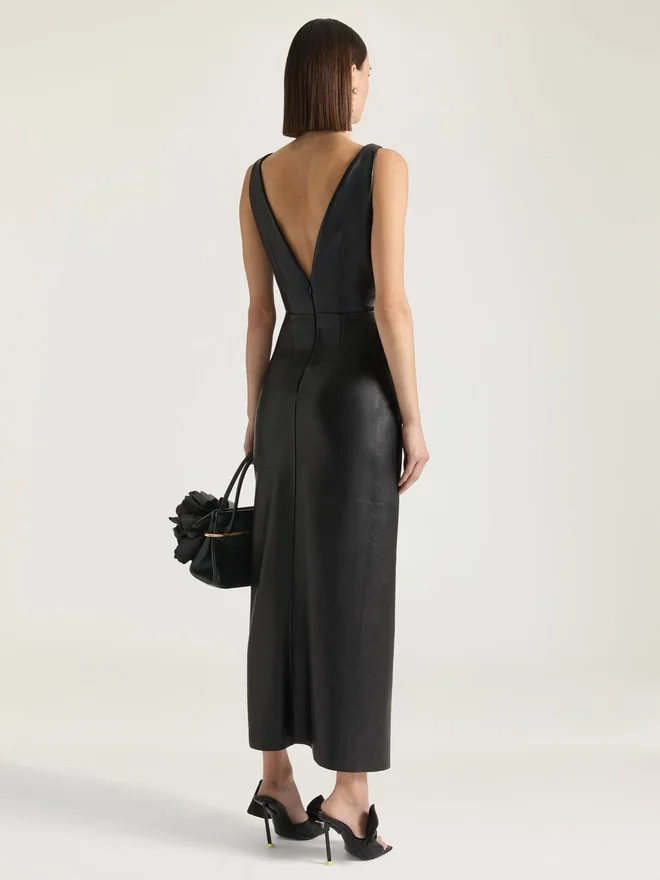 Long Wrapped Dress in Leather