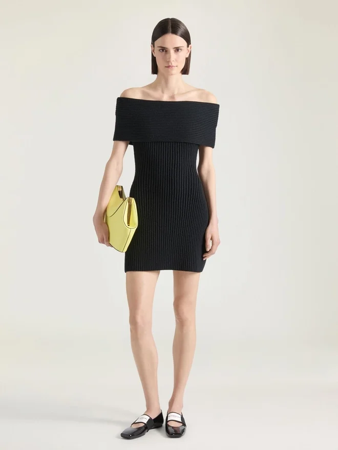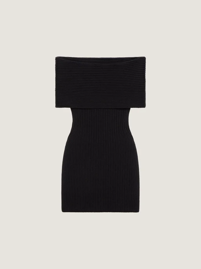 • Off the Shoulder Mini Dress in Wool.