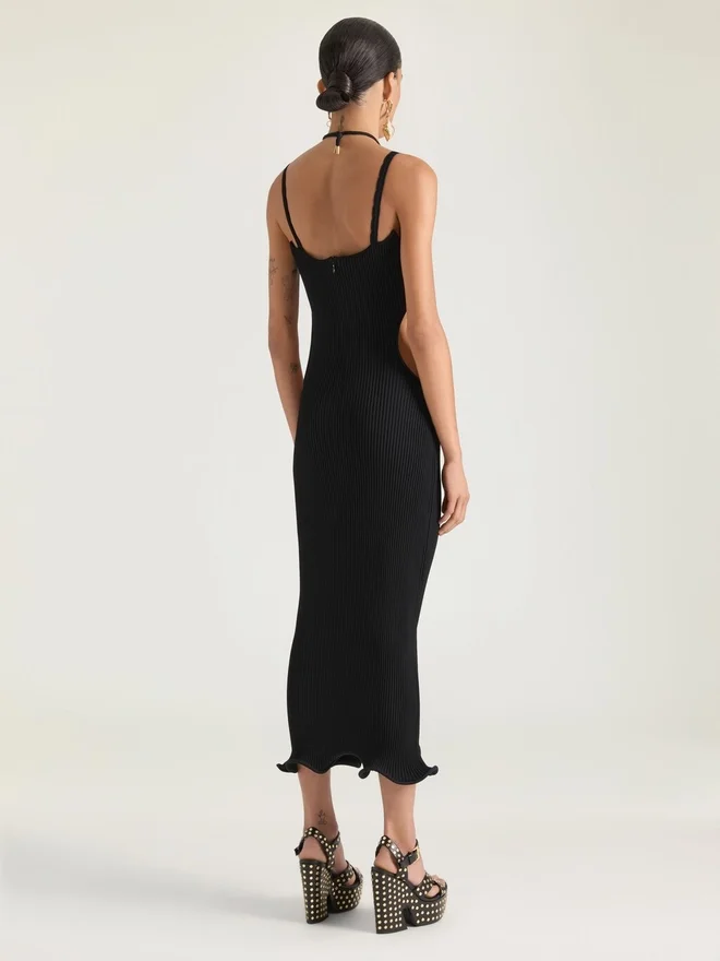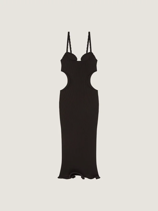 - Long Knitted Dress in Rib.
