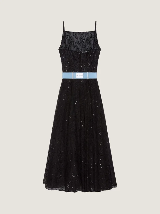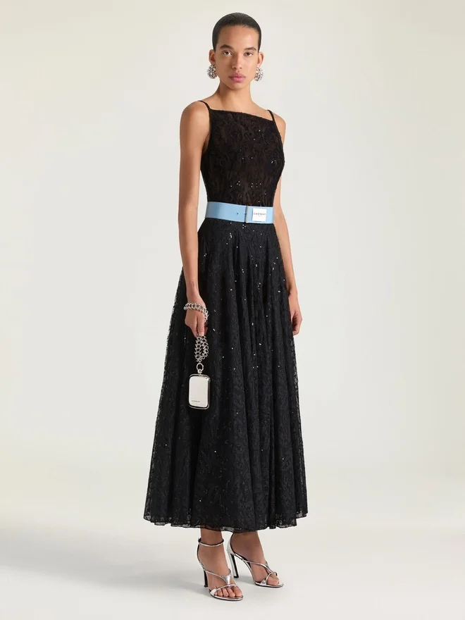 - Sliced Long Evening Dress in Lace.