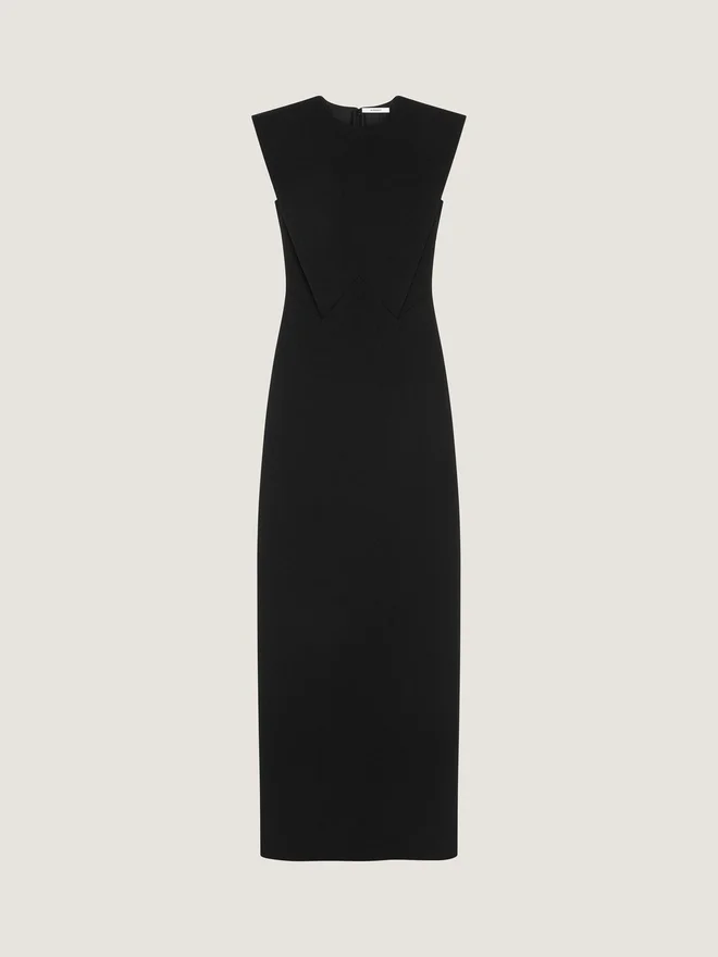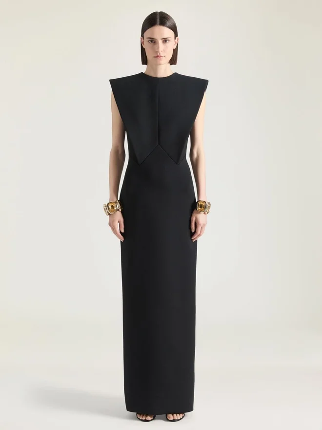 - Long Sleeveless Evening Dress in Wool Crepe.