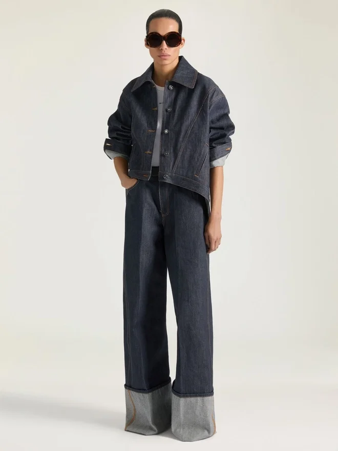 - Model Measures 5.8 Feet and Wears a Size 26.