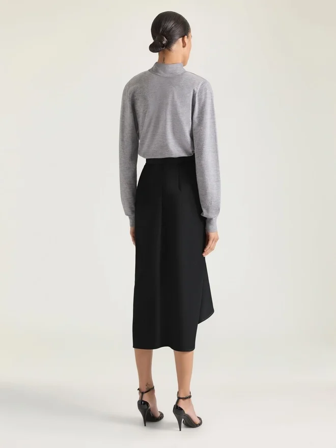 A Silhouette Inspired by the Gesture of Draping a Leather Jacket over a Mannequin. Fabrics Are Twisted and Wrapped Around the Body with Sensuality, While Front Slits and Pockets Create Movement and Attitude.