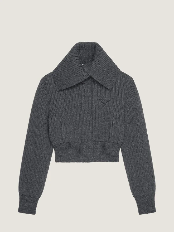 - Long-Sleeved Knitted Jacket in Wool.