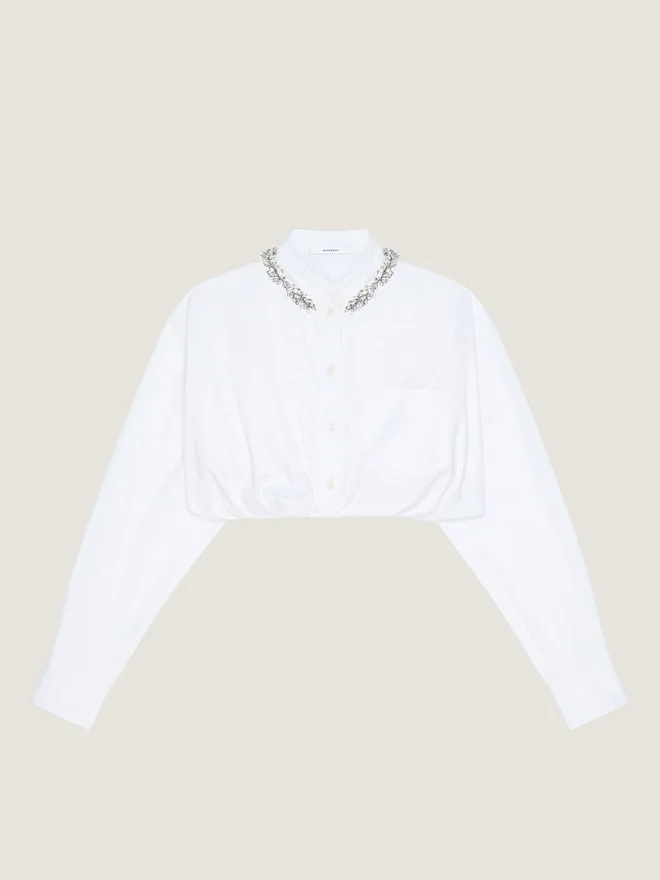 Cropped Shirt in Poplin with Crystals