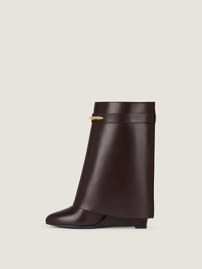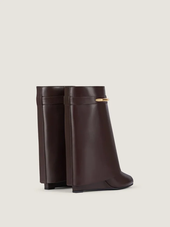 Ankle Boots in Calfskin Leather. Shark Pinch Line. Metal Pinch with Givenchy Engraved. Golden-Finish Metal Details. Pointy Toe.