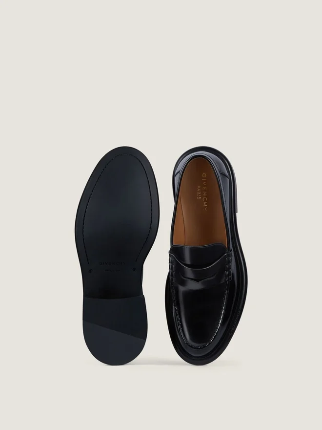 Loafers in Brushed Calfskin Leather. Gent Line. Givenchy Signature Layered on the Side of the Welt. Givenchy Paris Signature
