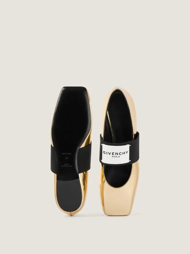 - Flat Ballerinas in Mirror Effect Calfskin Leather.