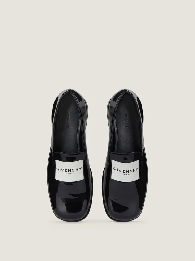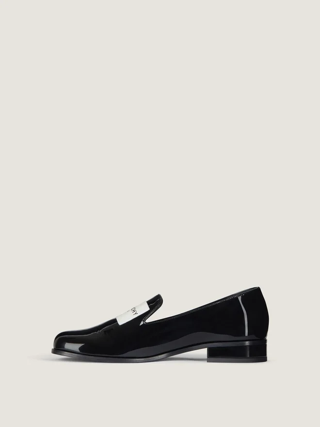 Loafers in Patent Calfskin Leather. Tux Line. Givenchy Paris Label Stitched on the Top. Givenchy Signature Debossed on the