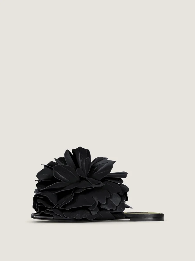 Boudoir Flat Mules in Leather with Rose Petals