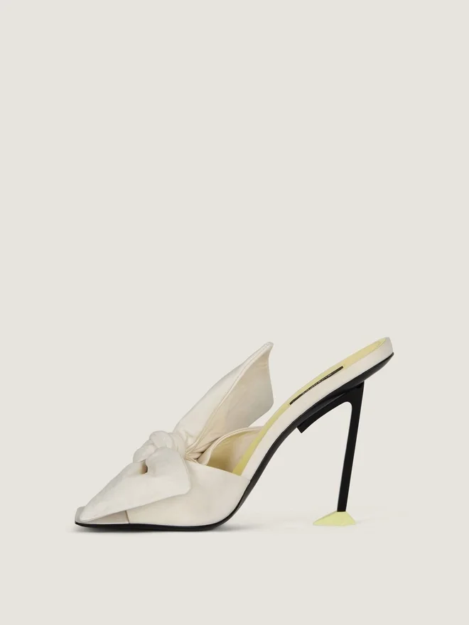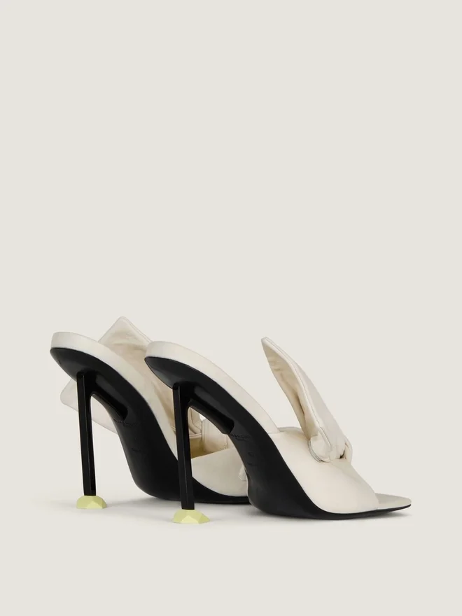 Heeled Mules in Nappa Sheep Leather. Boudoir Line. Large Memory-Shape Leather Bow That Retains Its Volume and Structure, Stitched