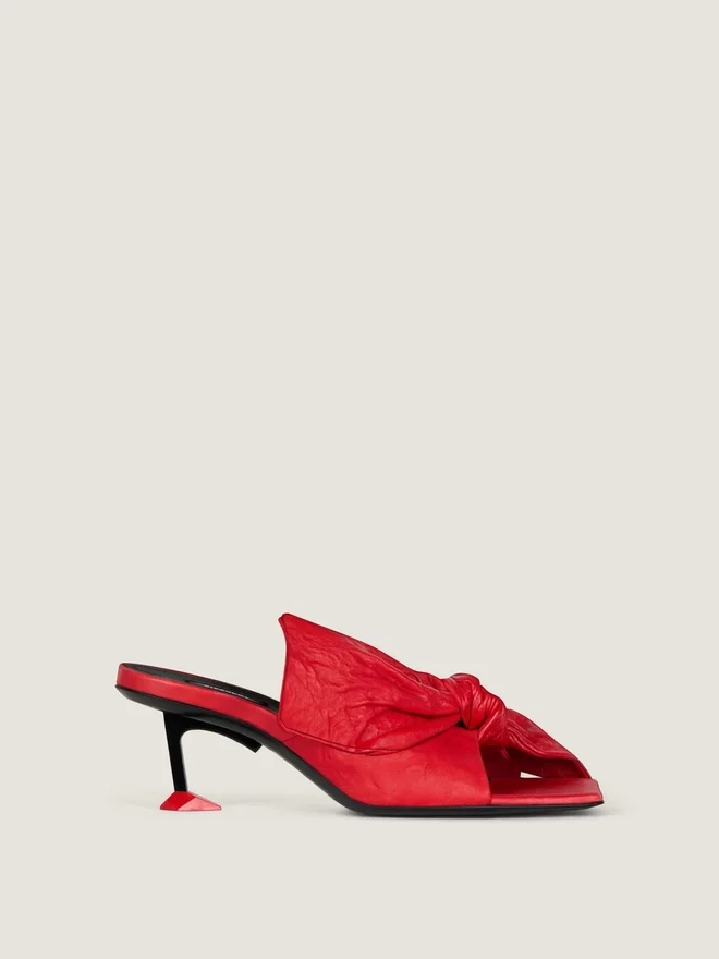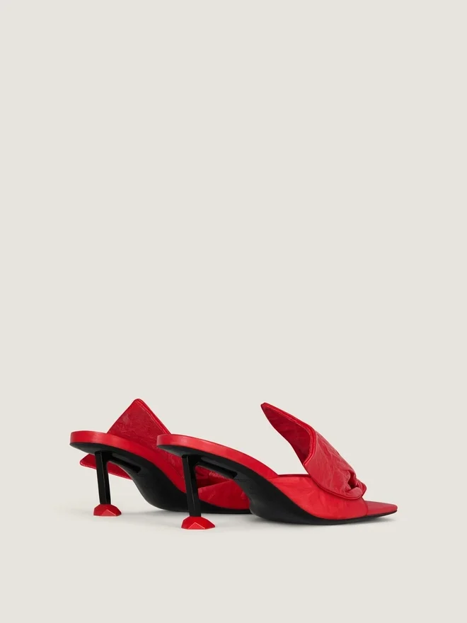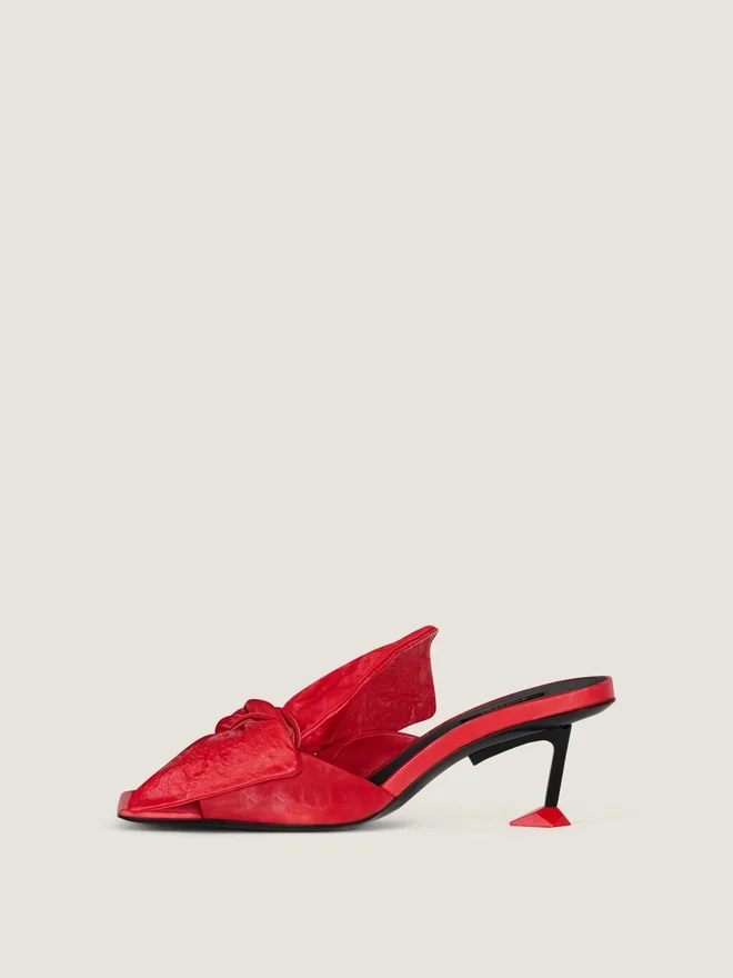 - Sculpted Metal Heel with Contrasted Diamond-Shaped Tip.