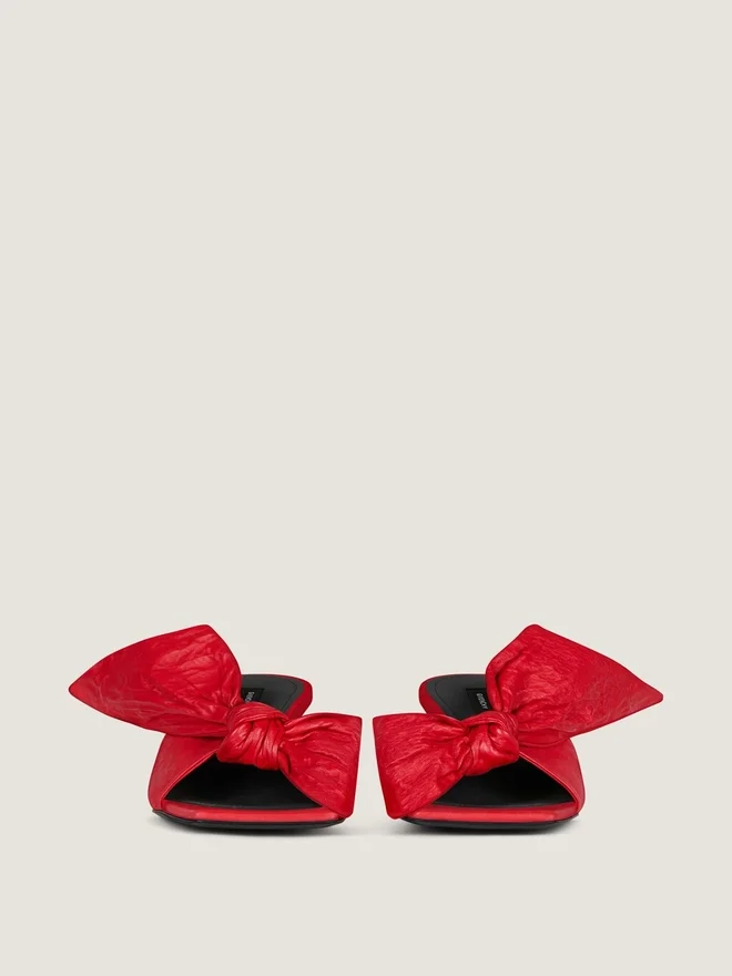 - Large Memory-Shape Leather Bow That Retains Its Volume and Structure, Stitched on Top.