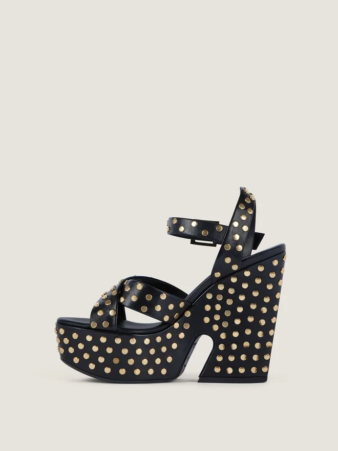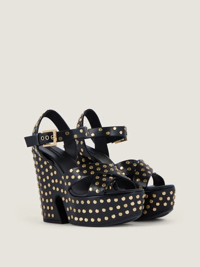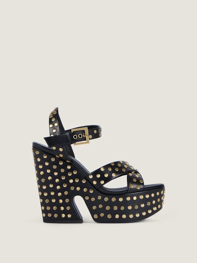 - Platform Sandals in Calfskin Leather with Studs.
