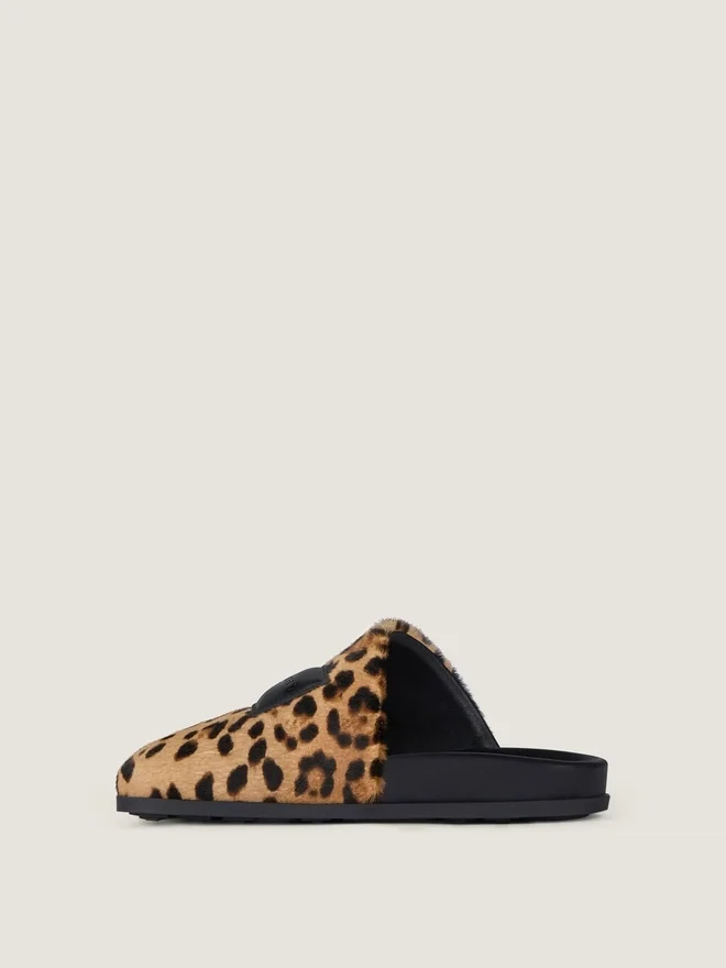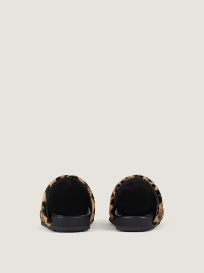 • Flat Mules in Pony Effect Lambskin with Leopard Pattern.