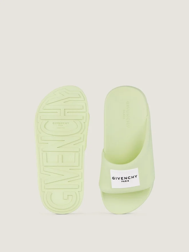 Flat Mules in Rubber. Label Line. Asymmetric Design. Givenchy Paris Rubber Label on the Top. Givenchy Paris Signature Debossed on