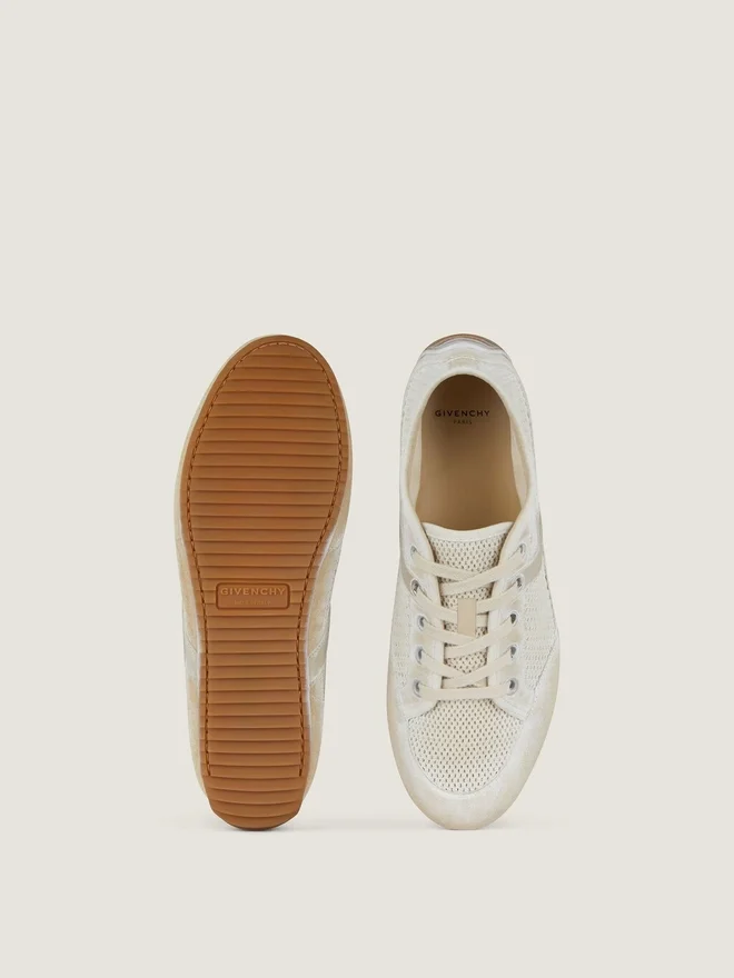Low Sneakers in Painted Mesh and Suede Leather. Slim Line. Raised Givenchy Signature on the Side. Givenchy Paris Signature